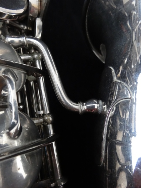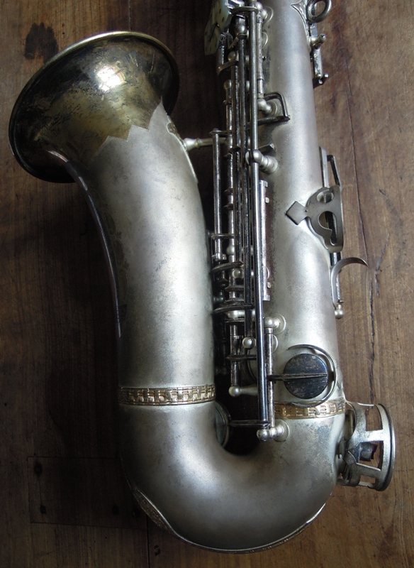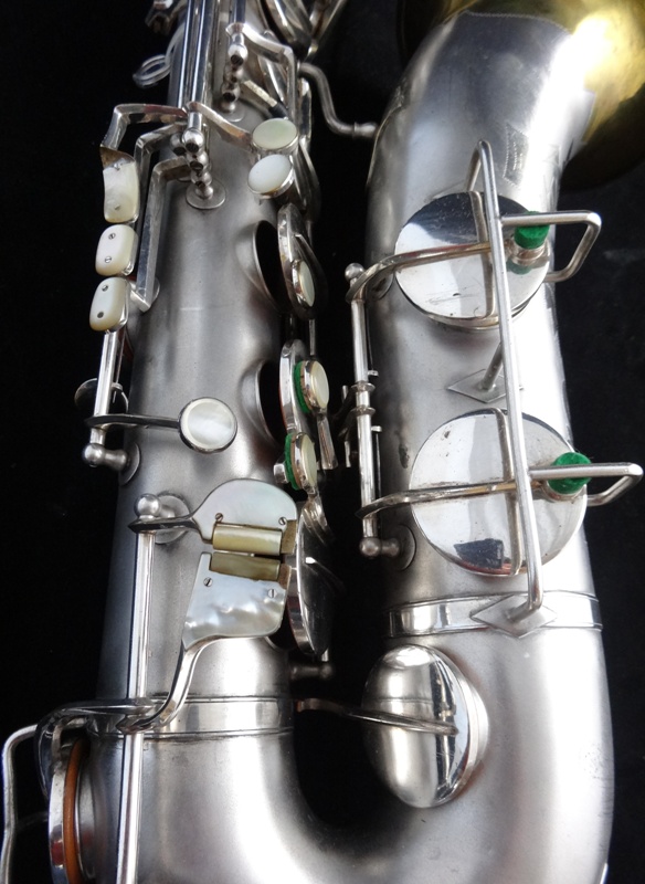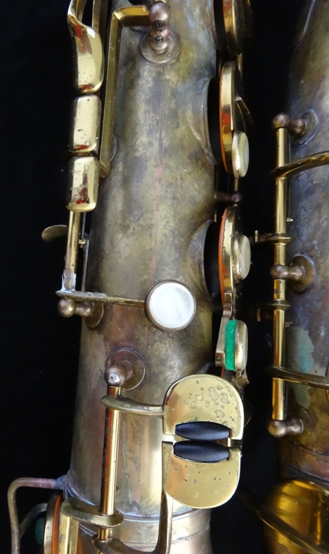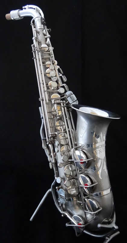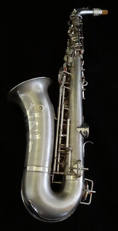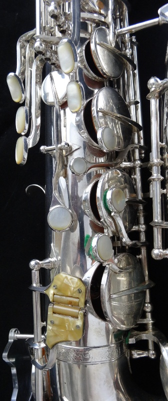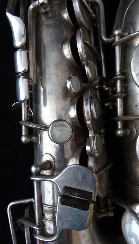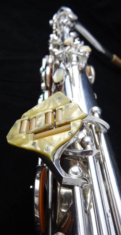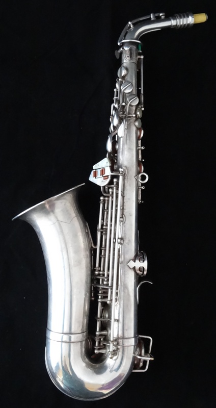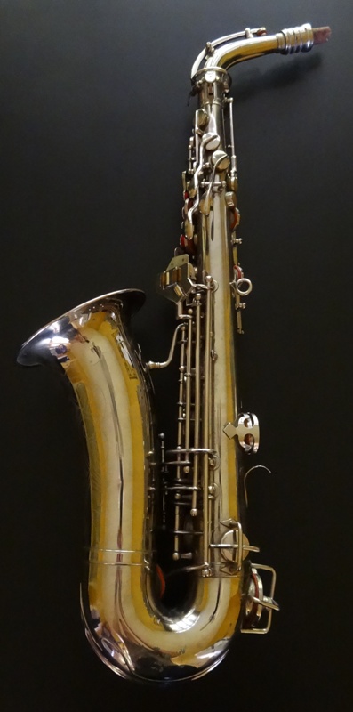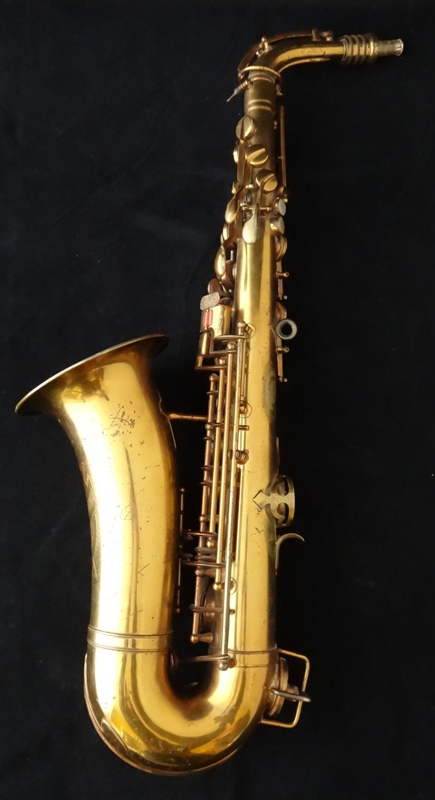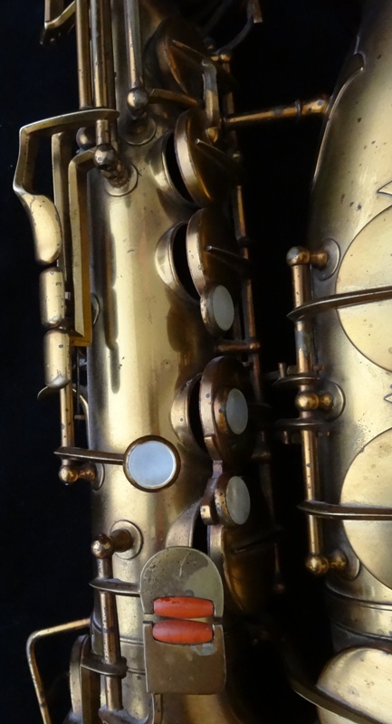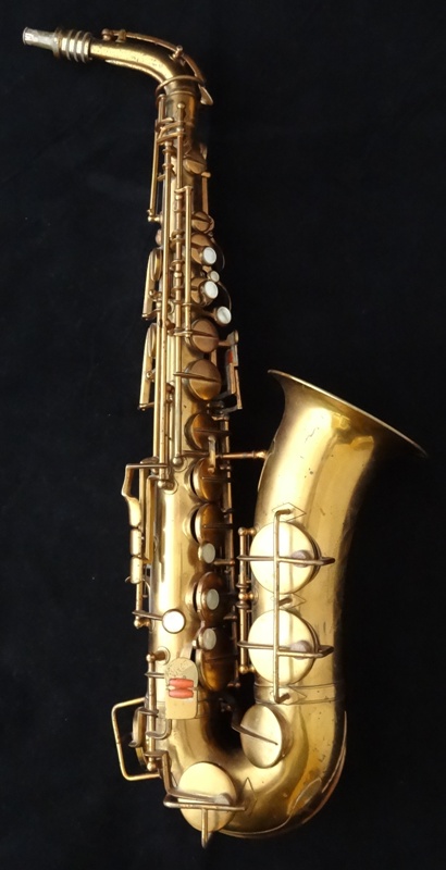 Ich besitze seine Nachfolger, eines außergewönliches, sehr seltenes Altsaxophon. Es wurde zwischen der frühen und späten zweiten Periode gebaut, aber es lehnt sich an der späten Seite. Es war das erste Modell, das mit der V-förmigen Becher-Korpus-Verbindung kam.