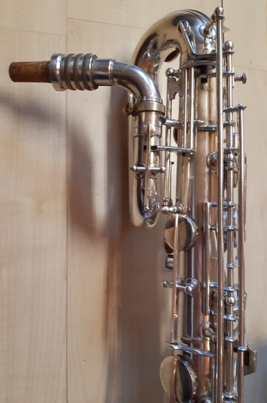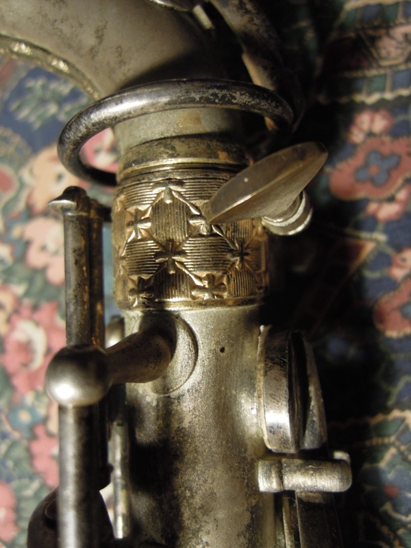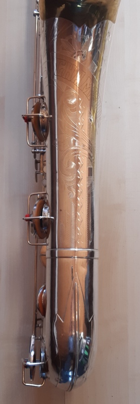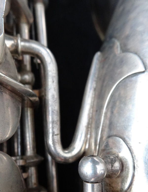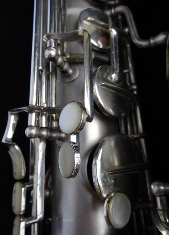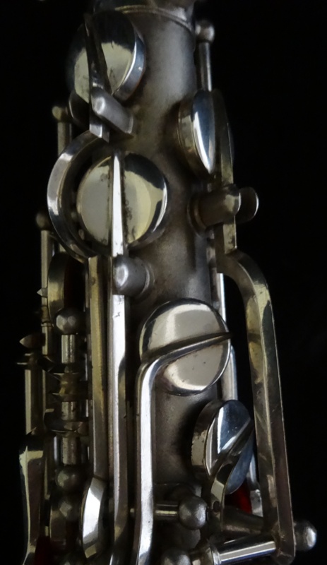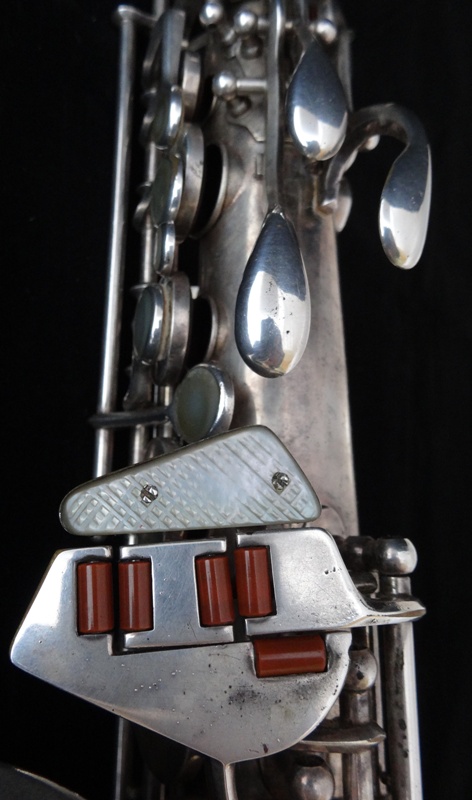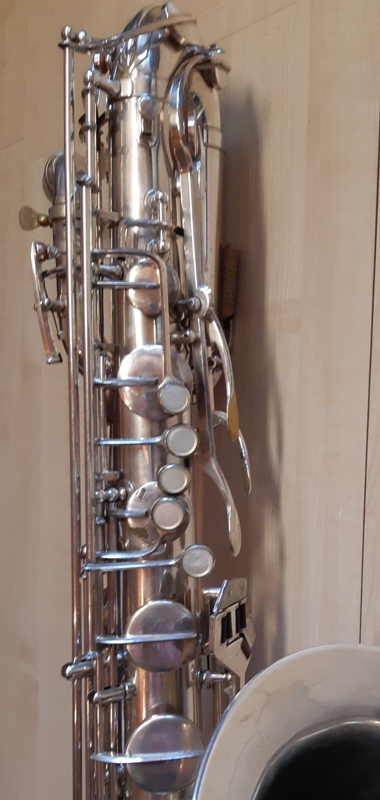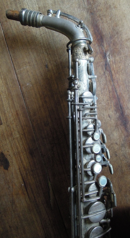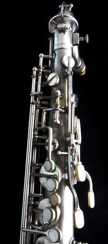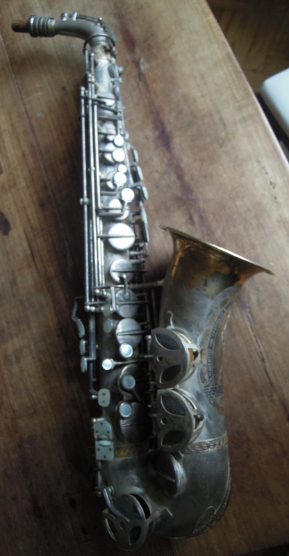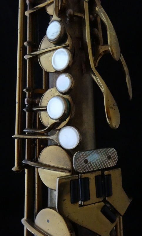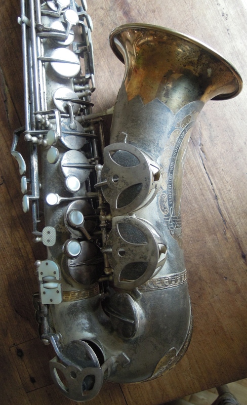 Ich besitze seine Nachfolger, eines außergewönliches, sehr seltenes Altsaxophon. Es wurde zwischen der frühen und späten zweiten Periode gebaut, aber es lehnt sich an der späten Seite. Es war das erste Modell, das mit der V-förmigen Becher-Korpus-Verbindung kam.